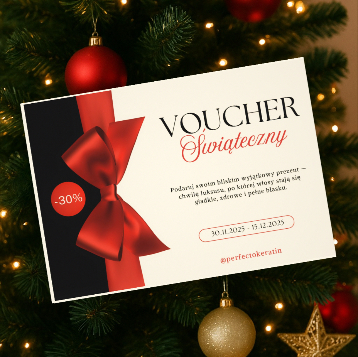 Od 29.11 do 15.12 możesz podarować komuś (albo sobie!) Voucher świąteczny na wybrane zabiegi wygładzające i regenerujące włosy — w wyjątkowych, obniżonych cenach:
