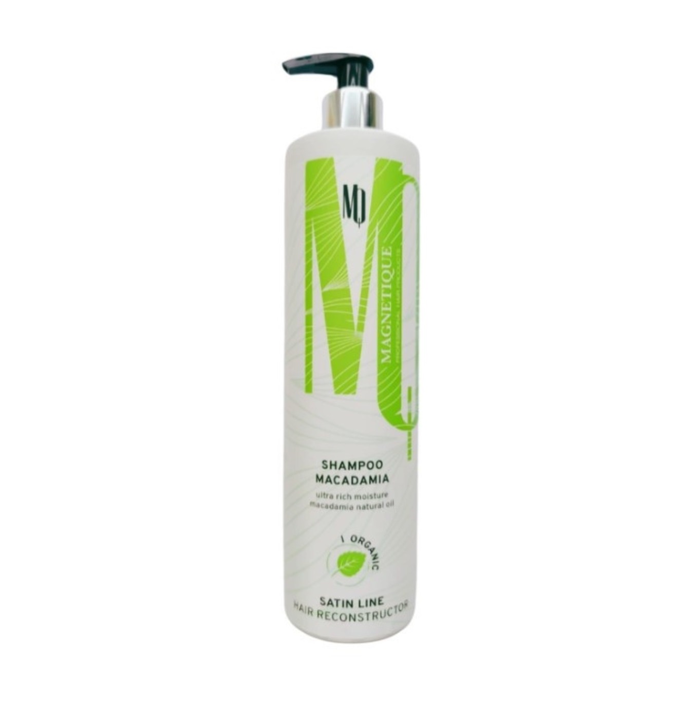 Szampon MACADAMIA RECONSTRUCTION od włoskiej marki MAGNETIQUE – głęboko odbudowujący szampon nawilżający, idealny dla włosów suchych i zniszczonych. Formuła szamponu została oparta na dwóch silnie regenerujących składnikach aktywnych: płynnej keratynie oraz oleju z orzechów macadamia. Dzięki ich synergicznemu działaniu, szampon intensywnie nawilża, odbudowuje osłabioną strukturę włosa i przywraca naturalny blask. Włosy stają się wyraźnie gładsze, bardziej elastyczne i pełne objętości – od nasady aż po same końce.
