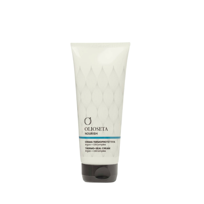 Lekki krem termoochronny do włosów Olioseta Thermo-Seal Cream z certyfikowanym organicznym olejkiem arganowym od Barex Italiana, zapewnia włosom kompleksową ochronę przed wysoką temperaturą suszarki, prostownicy czy lokówki. Głęboko odżywia i nawilża, redukując puszenie się włosów i nadając im wyjątkową miękkość oraz połysk. Dzięki swojej formule eliminuje efekt elektryzowania, a przy tym nie obciąża nawet cienkich włosów.