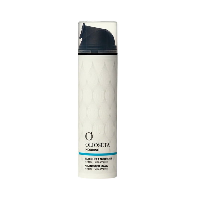 Odżywcza maska do włosów Olioseta Nourish z certyfikowanym organicznym olejkiem arganowym i kompleksem składników regenerujących od Barex Italiana. Silnie skoncentrowana formuła intensywnie nawilża, odżywia i odbudowuje włosy, przywracając im miękkość, elastyczność i naturalny blask. Maska uszczelnia łuski włosów, odbudowuje ich naturalną barierę ochronną oraz skutecznie chroni przed puszeniem, wilgocią i przesuszeniem. Już po pierwszym użyciu włosy stają się jedwabiście gładkie, sprężyste i pełne życia.